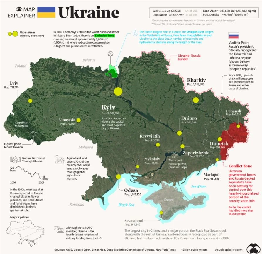 A map of Ukraine and its history relative with USSR