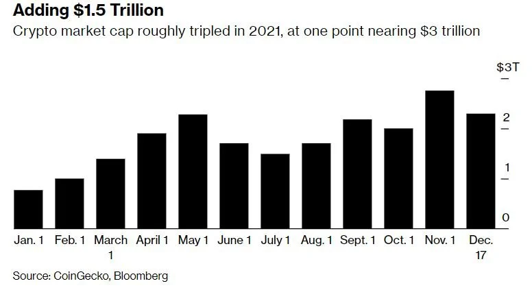 Crypto triples in value in 2021 (Bloomberg)